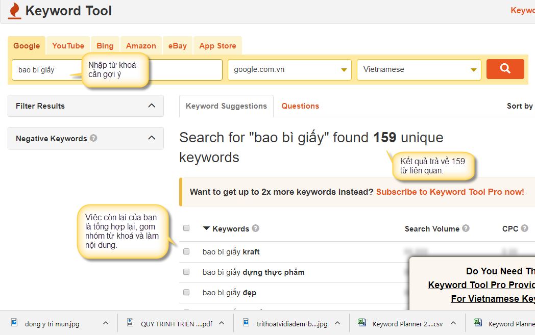 - Việc còn lại của bạn là tổng hợp lại các kết quả, phân nhóm từ khoá và làm nội dung.